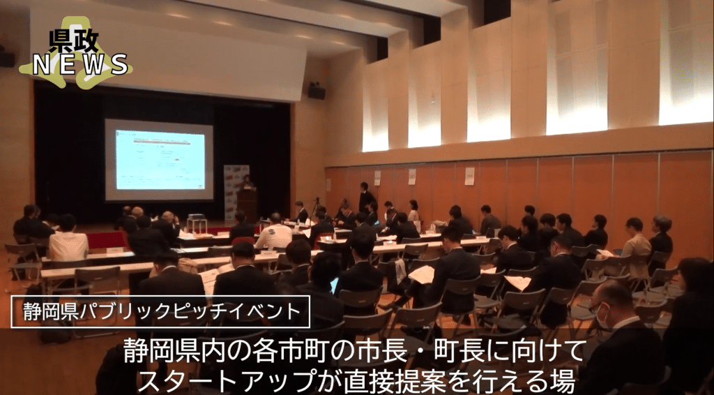 「Shizuoka Public Pitch」は、静岡県中部地域の各市町が抱える課題に対し、スタートアップ企業が市長・町長などの首長へ直接提案を行うイベントです。当日は複数の登壇者が参加し、それぞれの視点から地域課題に対する解決策が提示されました。